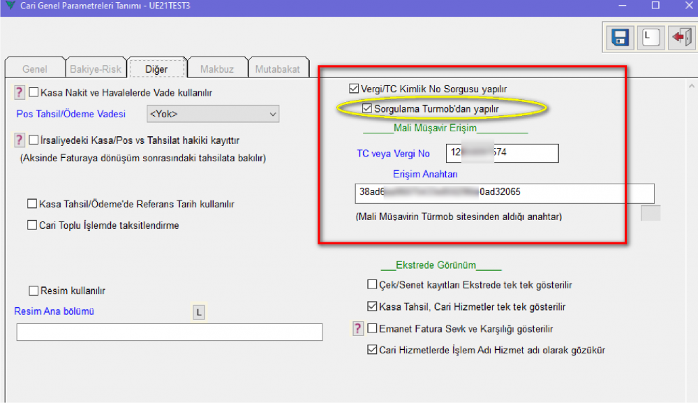 - Mali Müşavir’in Türmob’dan aldığı anahtar bilgisi Erişim anahtarı kısmına yapıştırılır