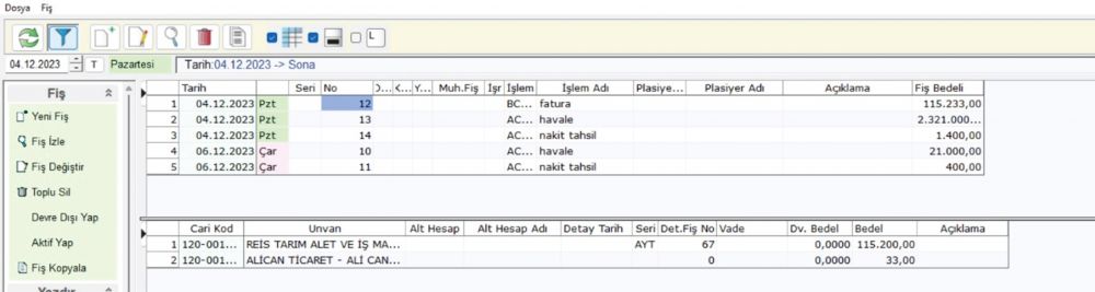 Fişler Finansal/Cari Hesap/Hareketler/Cari Toplu İşlem Fişleri altına kayıt edilir.