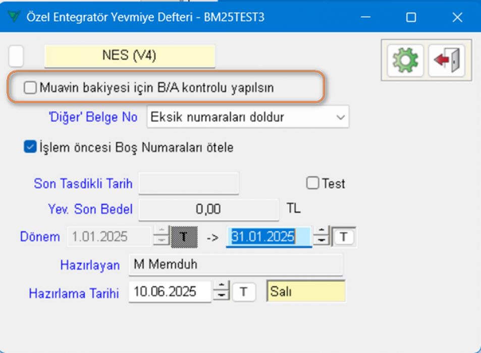Şu an e-Defter için bu kontrol eklenmesine rağmen yakın zamanda “Dönem sonu kontrolü” benzeri bir adıma alt işlem olarak eklenecektir.