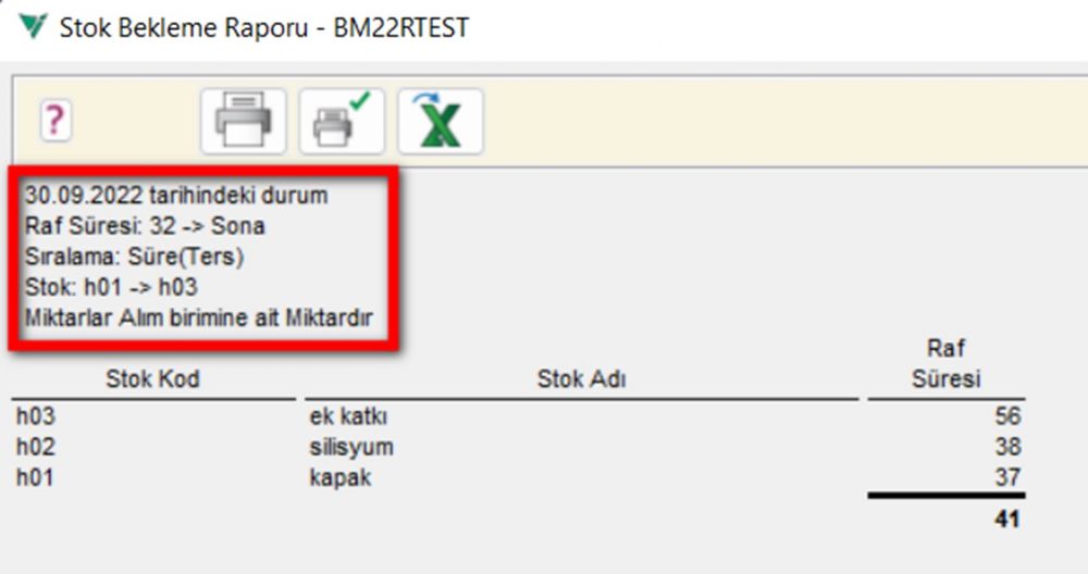 Öte yandan bu süre raporlama anında “Hesap sonucu Stok tanımına kaydedilsin” seçeneği ile Stok tanımına kaydedilerek başka adımlarda kullanılabilir. Bu veri özellikle Stok kritik seviye hesabında kullanılır. Zaten kritik seviyenin asıl amacı da “Rafta kalma süresini en aza indirerek gereksiz depolama maliyetinden kurtulmaktır.