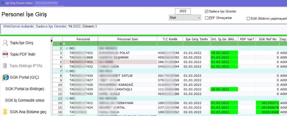 - Seçilen kişiler için SGK durumun toplu olarak sorgulanması