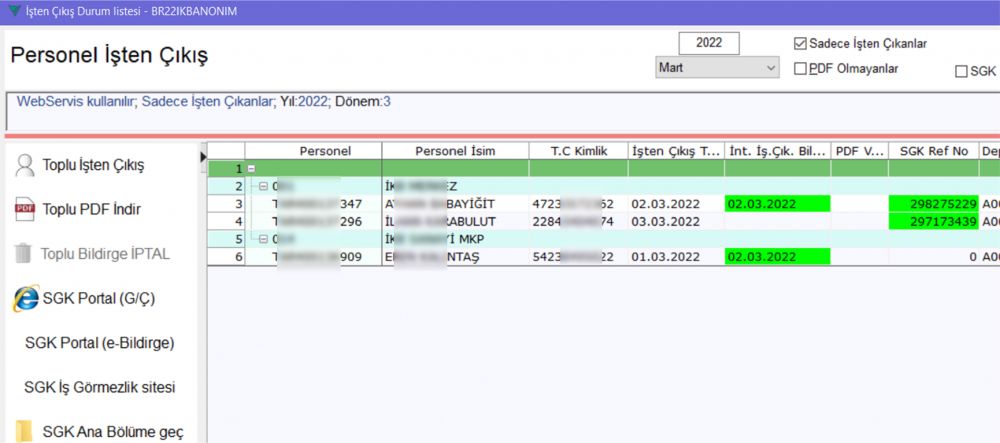 - İşten çıkışların toplu olarak yapılması