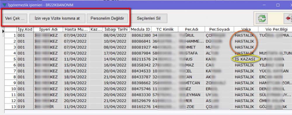 - SGK işyerleri bazında İşgöremezlik kayıtlarının çekilmesi